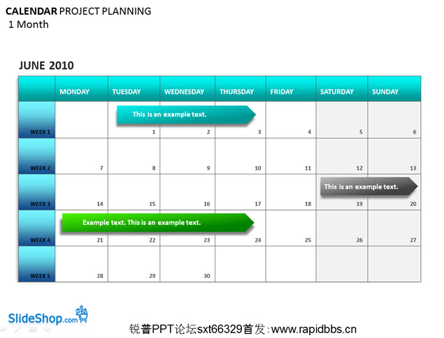 日历标记 工作周期进度安排slideshop图表