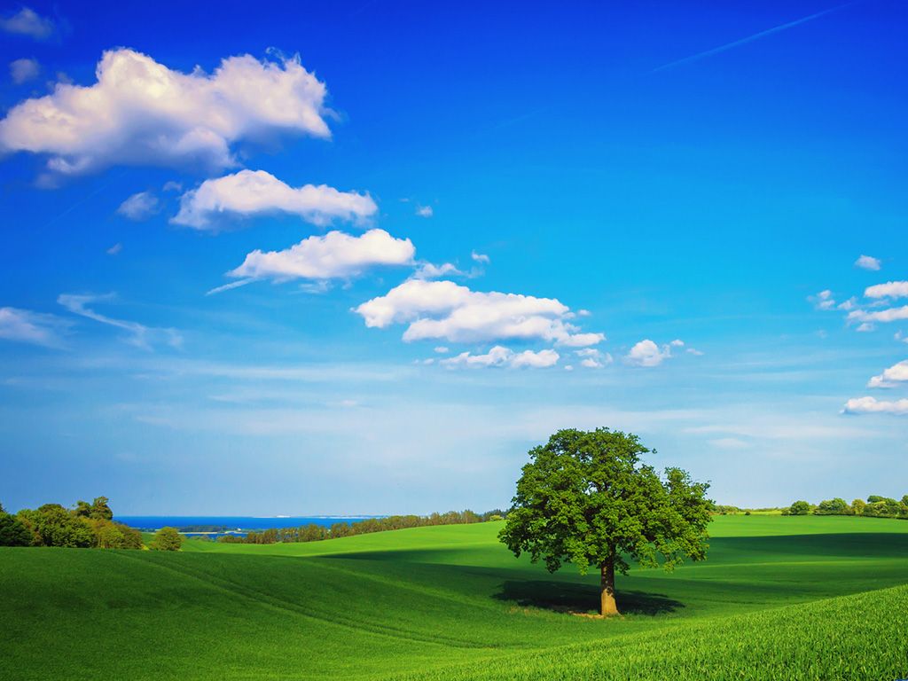 绿草地上的一棵树蓝天白云ppt图片